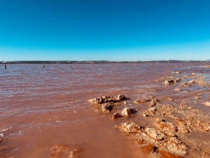 9 km Laguna Rosa Torrevieja - Voda v laguně nadnáší, jako například Mrtvé moře, je plná nejenom soli, ale i mnoha léčivých látek. Léčí lupénky, revma, ekzémy, posiluje při onemocnění srdce. Extrémně slaný vzduch v blízkosti laguny ocení alergici a astmatici. Více zde.